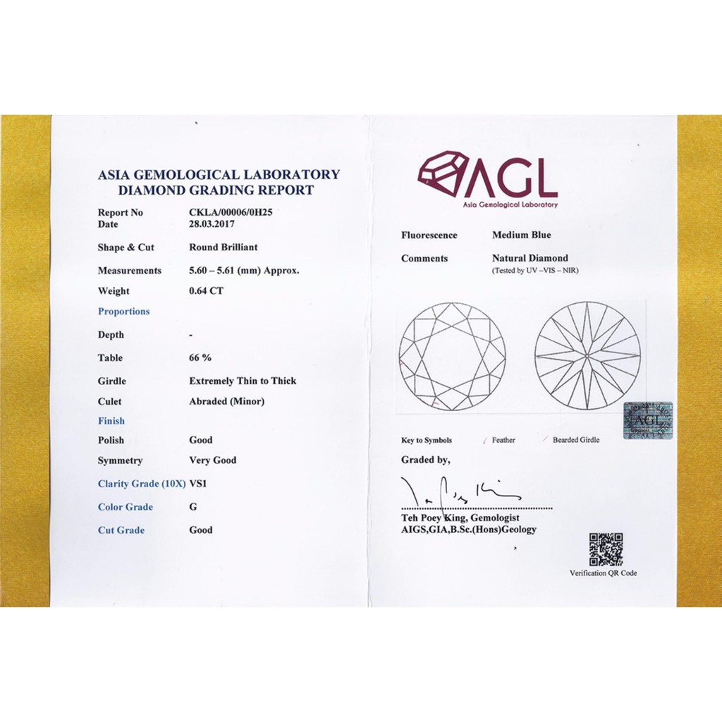 Clearance Far East Asia Gemological Laboratory Agl Certified Round Loose Diamond 0 64 Carat G Colour Vs1 Shopee Malaysia