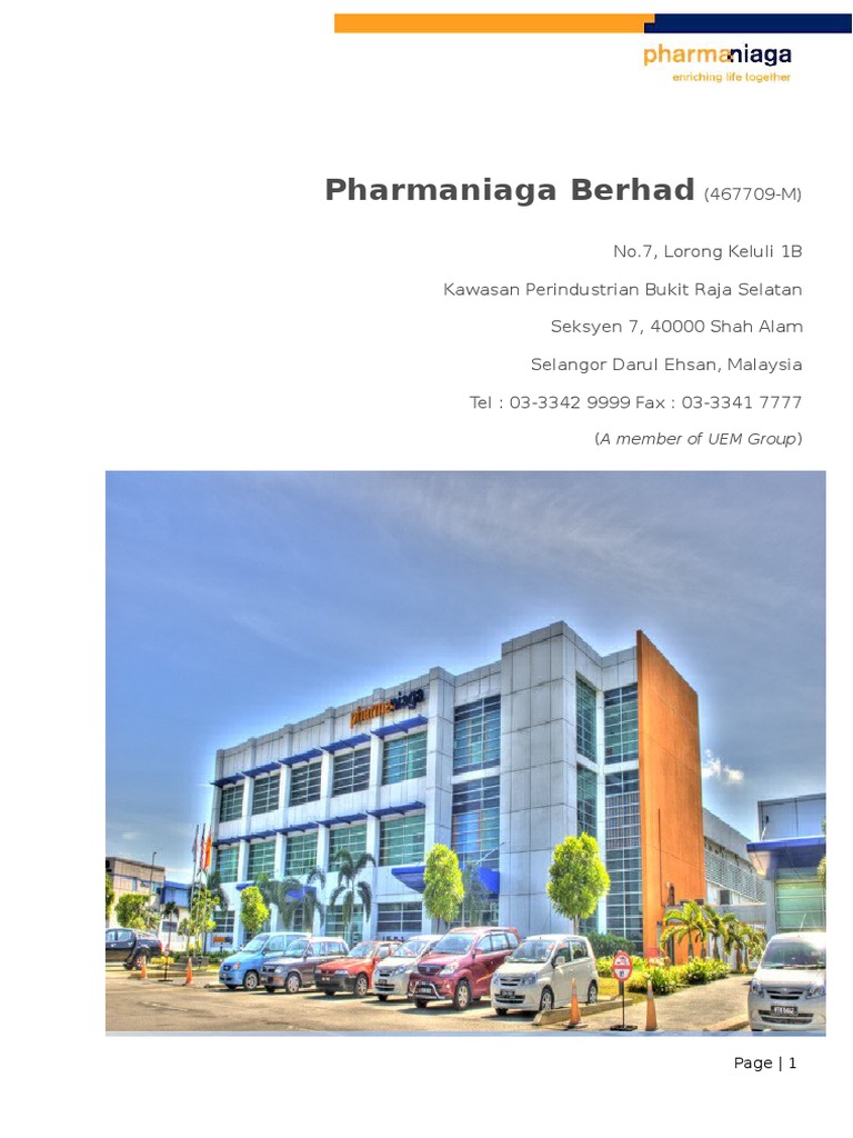 As Malaysias largest listed integrated pharmaceutical group Pharmaniaga Berhad has blazed a trail within the healthcare industry as a provider of quality products and services. 7 Lorong Keluli 1B Kawasan Perindustrian Bukit Raja Selat Shah Alam 40000 Malaysia. 603-3342 9999 Fax.