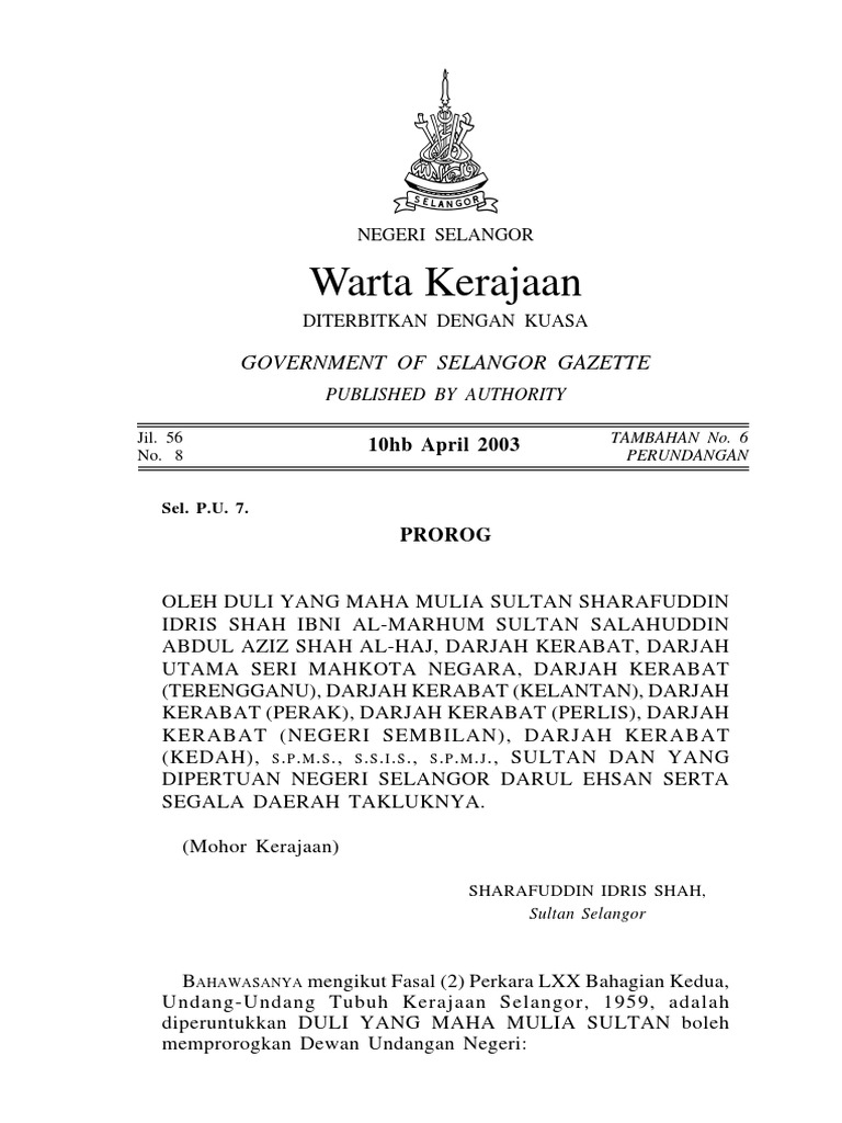 FileUndang - Undang Tubuh Negeri Selangor 1959pdf. The following Enactments passed by the Selangor Legislative Assembly and assented to by His Royal Highness the Sultan of Selangor are published pursuant to Clause 4 of Article. Saya percaya mereka yang terlibat dalam usaha ini perlu melalui proses-proses tersebut untuk mencapai matlamat yang mereka inginkan.