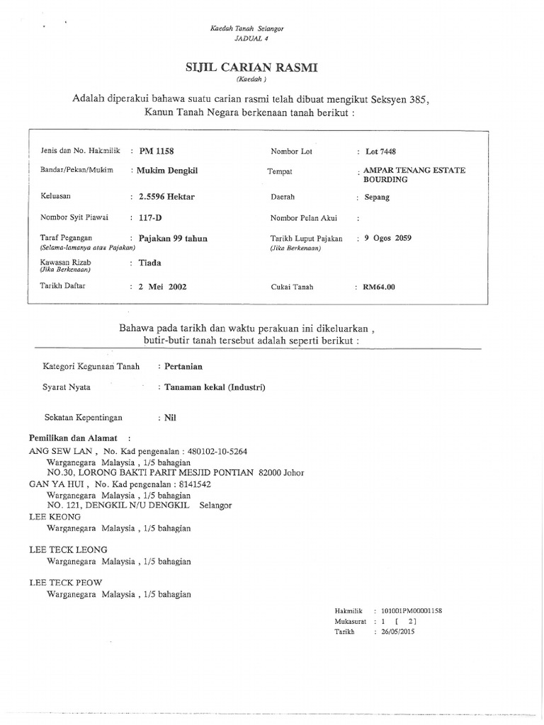 Borang Carian Rasmi Pejabat Tanah Selangor
