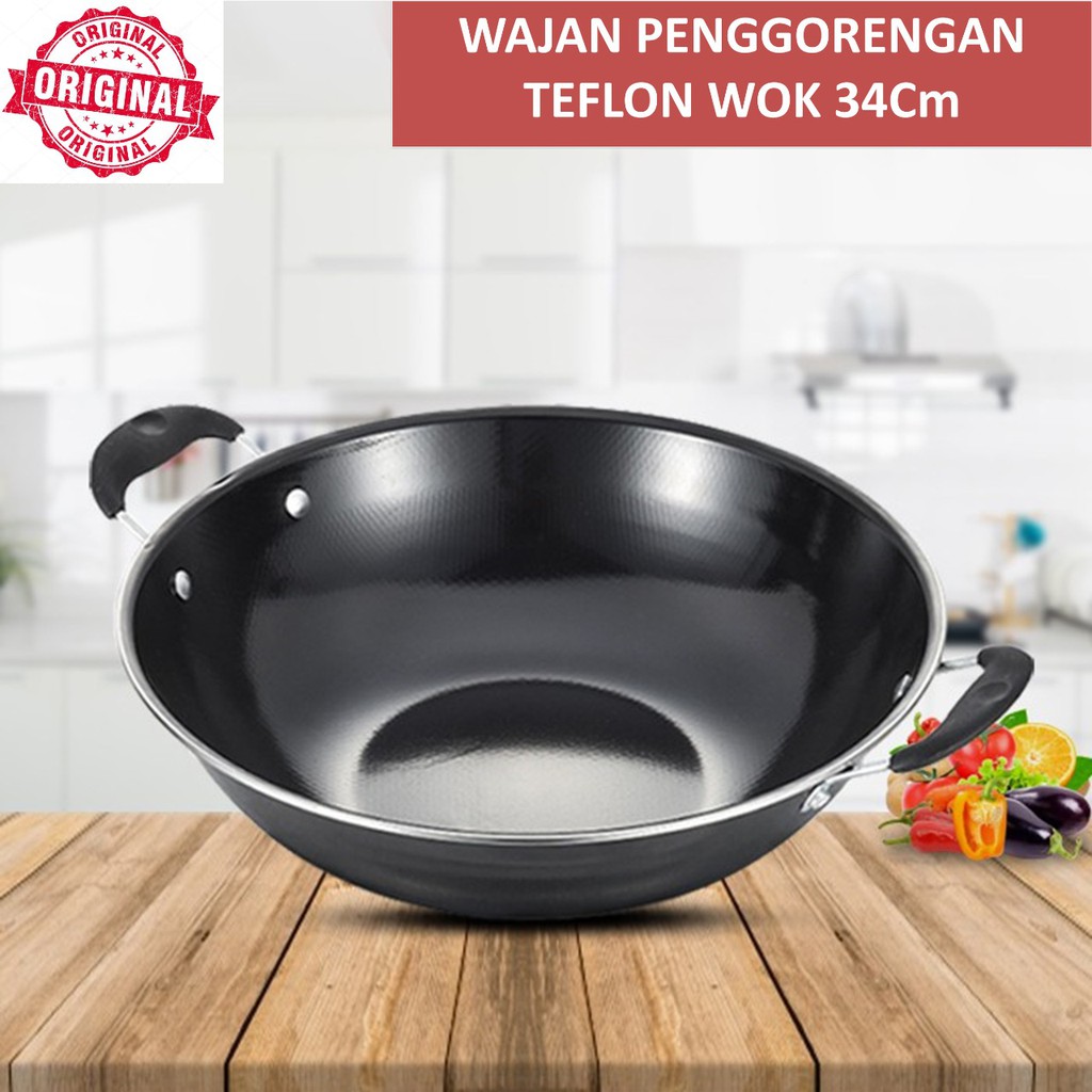 Wajan Kuali Ukuran 32 34 Cm 1070 Wajan Ukuran Besar Wajan Penggorengan Teflon Wok 32 Cm 34 Cm Shopee Indonesia